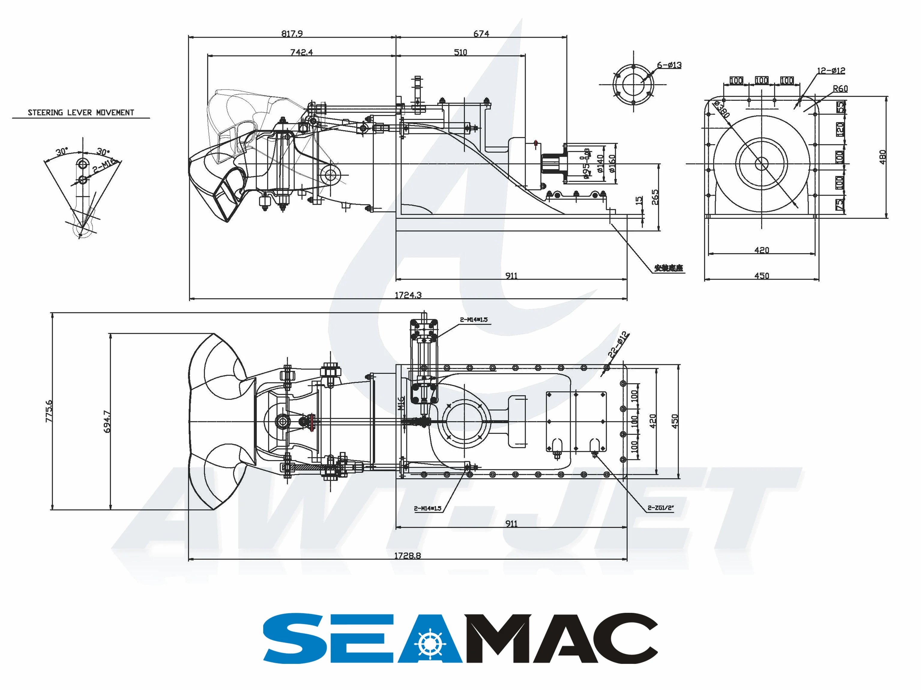 Equipped with a hydraulic steering and a hydraulic reversing system, it has a dual – bucket diversion – type reversing bucket, ensuring easy installation. It uses ISO – standard SWC160 universal joints or same – size ISO – standard flanges for power input. With diesel or electric motors as prime movers and a CCS certificate, it meets international marine safety standards.